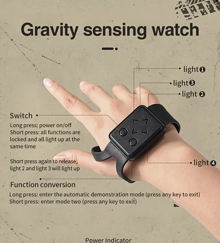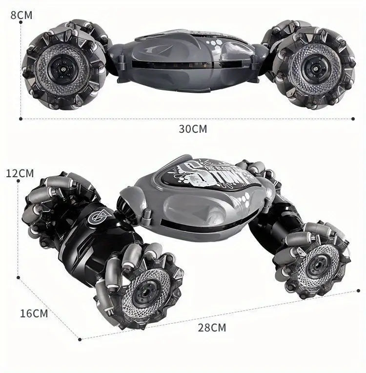 ¡Diversión sin límites! Este coche acrobático 4WD combina control remoto tradicional y control por gestos con pulsera inteligente. Con giros de 360°, movimientos laterales, luces y sonidos dinámicos, es el regalo perfecto para sorprender a los niños con horas de entretenimiento.