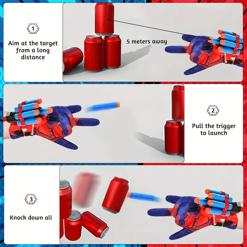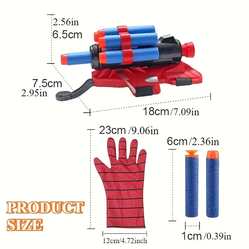 ¡Conviértete en tu superhéroe favorito! Este guante lanzador inspirado en Spider-Man es perfecto para juegos de rol, disfraces, fiestas temáticas y momentos de diversión sin fin.