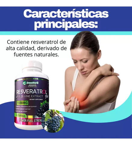 ¿Buscas el mejor suplemento de resveratrol del mercado? No necesitas buscar más. Nuestra fórmula combina resveratrol trans puro con extractos naturales de té verde, semilla de uva, acai, quercetina y vino tinto, creando un suplemento antioxidante completo y altamente efectivo.